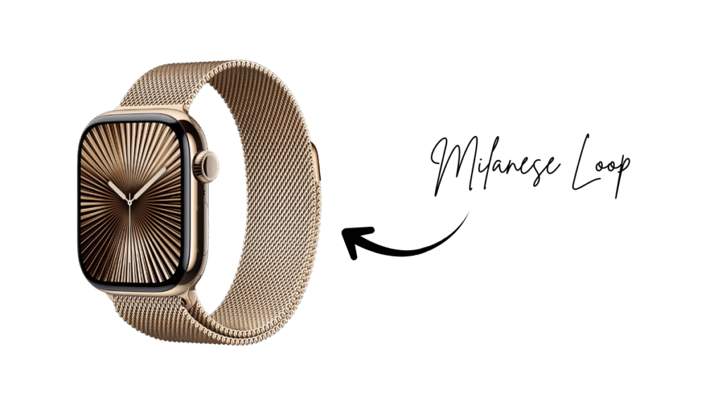 3. Milanese Loop Band: A finely woven stainless steel mesh band that is adjustable via a magnetic closure, offering an elegant, comfortable, and customizable fit.